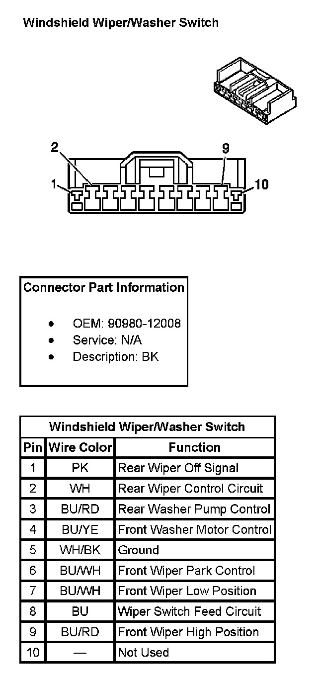 Windshield Washer Switch: Diagrams