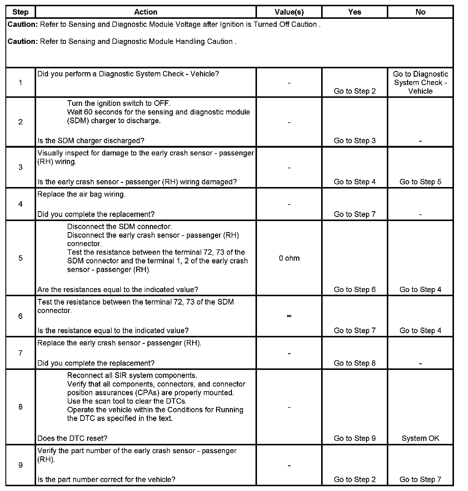 Upon passing these tests, the ignition and deployment loop voltages are measured to ensure that these voltages are within the normal ranges. The SDM monitors the voltages at the driver low and the passenger low to detect shorts to ground or voltage in the deployment loops.