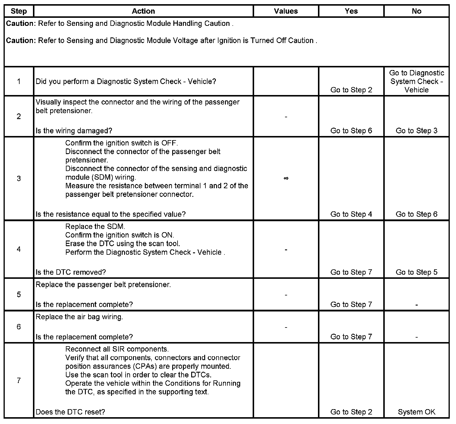 * The resistance of the passenger belt pretensioner deploy loop is lower than 1.77 ohms.