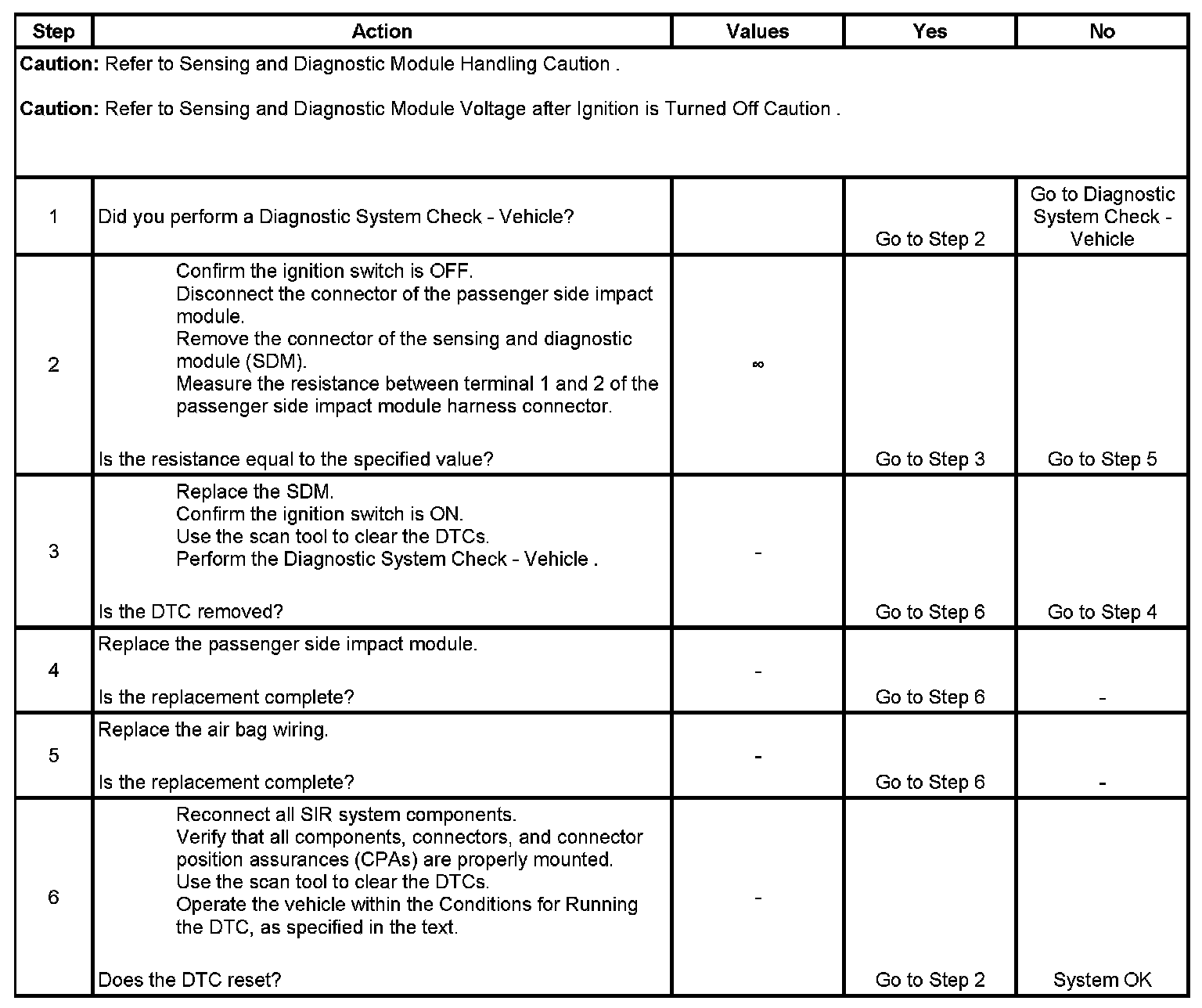 * The resistance of the driver side air bag deployment loop is lower than 1.77 ohms.