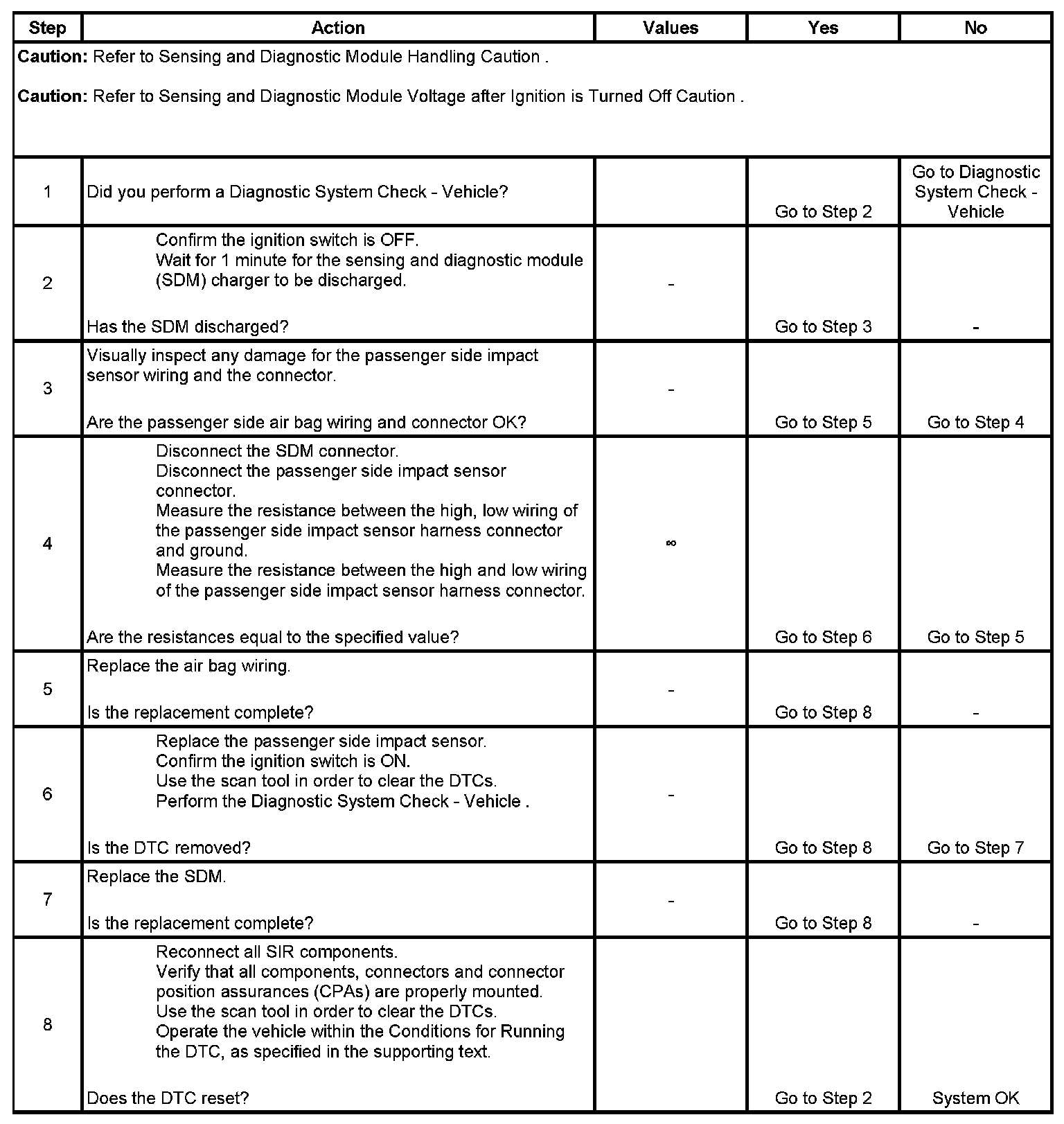 Upon passing these test ignition and deployment loop voltages are measured to ensure that they are within their normal voltage ranges. The SDM monitors the voltages at the driver low and the passenger low to detect shorts to ground or voltage in the deployment loops.