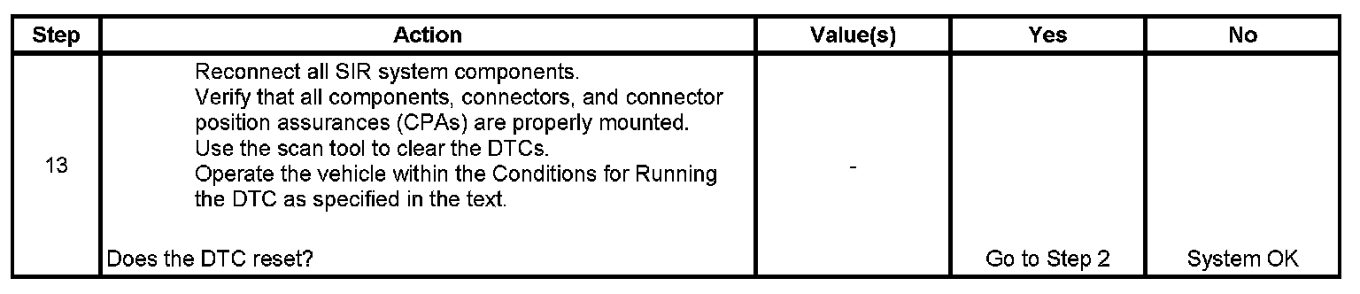 When the ignition switch is turned to ON, the sensing and diagnostic module (SDM) will perform a turn-on test to diagnose critical malfunctions within the SDM itself.