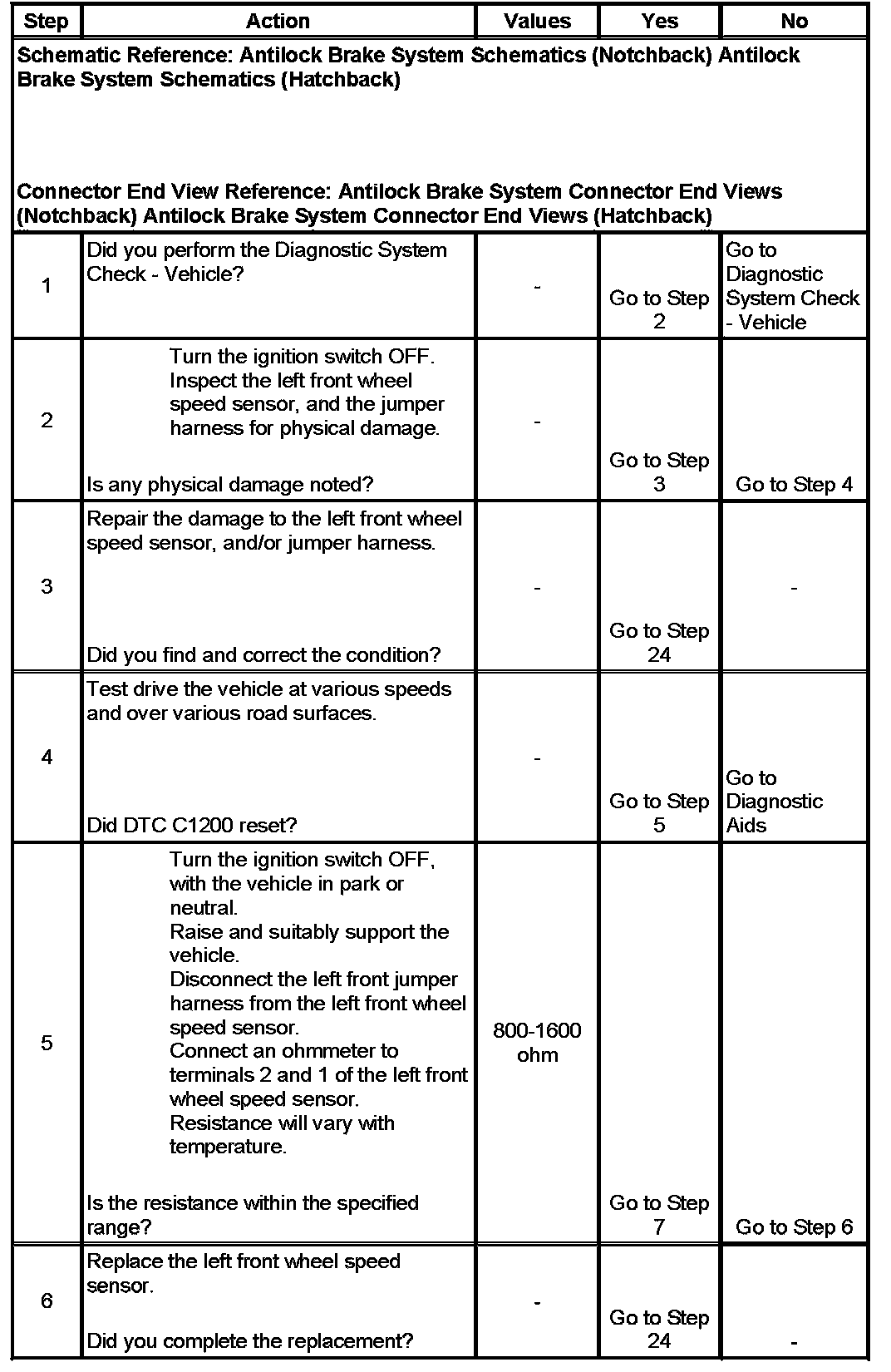 DTC C1200 Left Front Wheel Speed Sensor Circuit Open or Shorted
