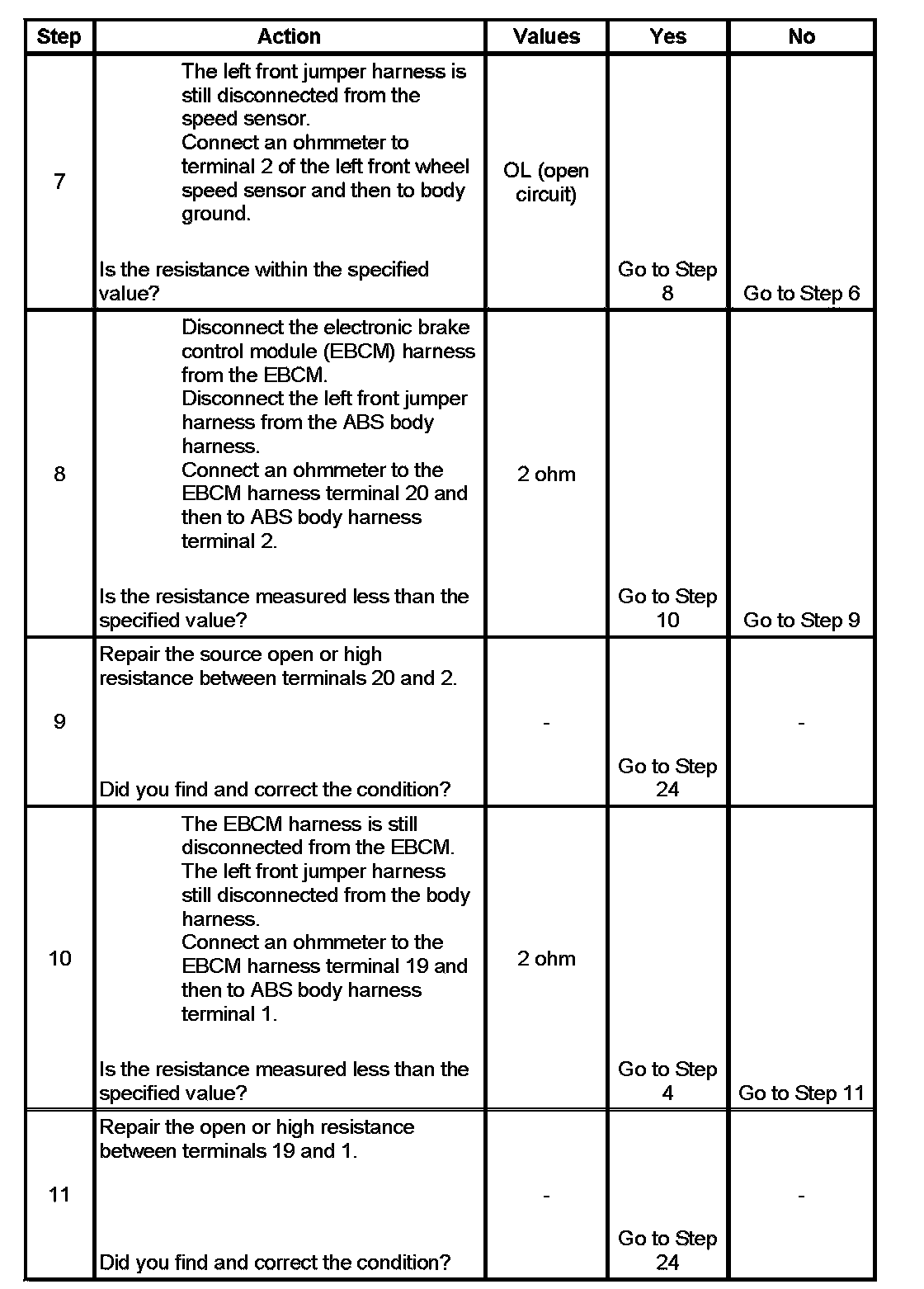 When measuring the wheel speed sensor resistance, ensure the vehicle is at room temperature, since resistance will increase with temperature.
