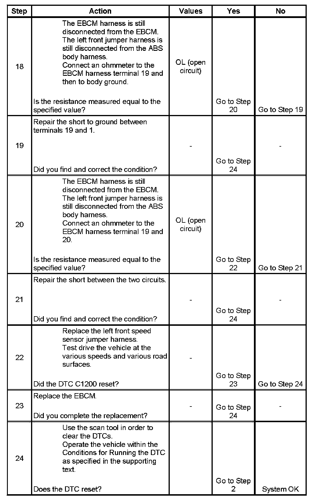 Failure to perform the previous steps carefully and fully can result in misdiagnosis, unnecessary component replacement, and recurrence of DTC C1200.