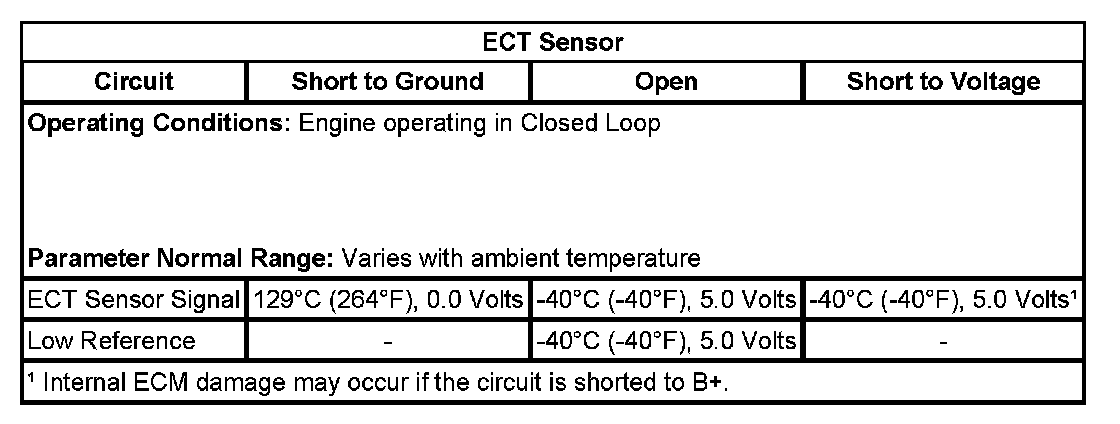 - Engine Coolant Temperature (ECT) Sensor Circuit Intermittent High Voltage