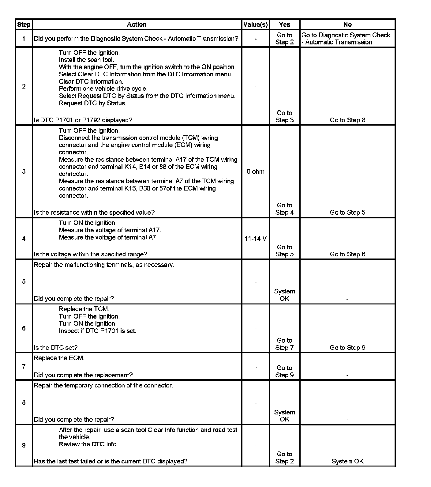 DTC P1701 or P1792 (Non Europe or N. American Emissions)