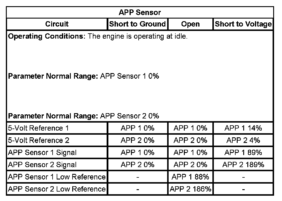 - Accelerator Pedal Position (APP) Sensor 2 Circuit Low Voltage