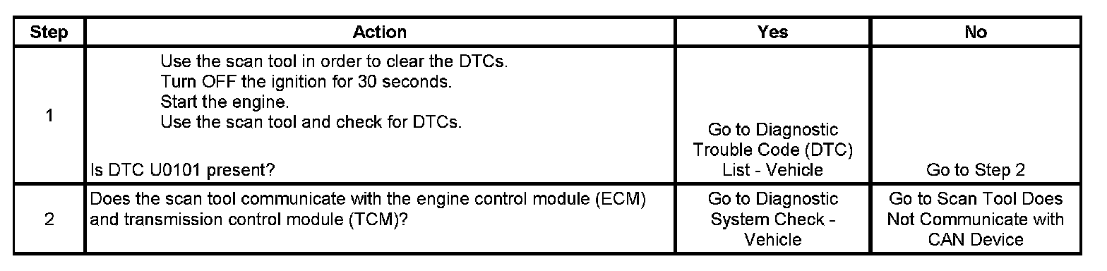 1. When the ECM stores a DTC U0101, a DTC U2105 simultaneously sets in the TCM. Performing the diagnostic procedures in DTC U2105 will repair DTC U0101.