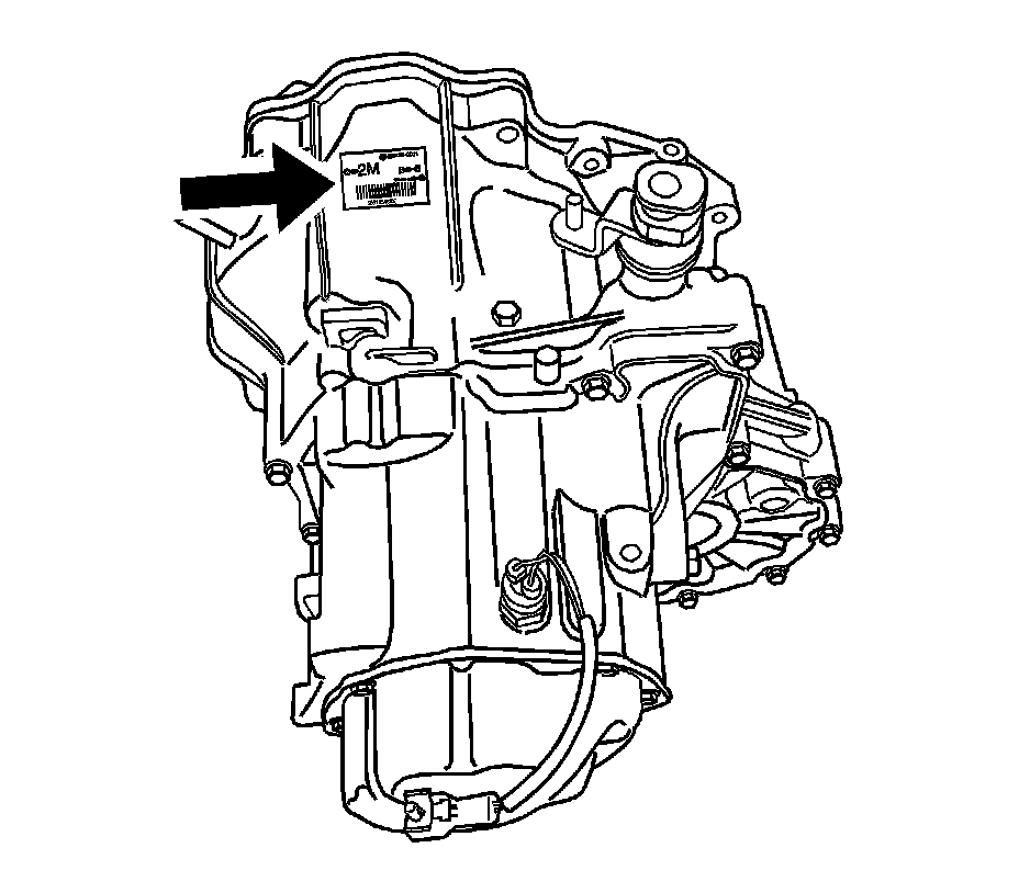 The manual transaxle identification number is attached to the top of the transmission case near the engine.