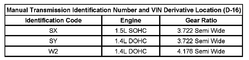 Manual Transaxle Identification Number Plate Location (D-16)