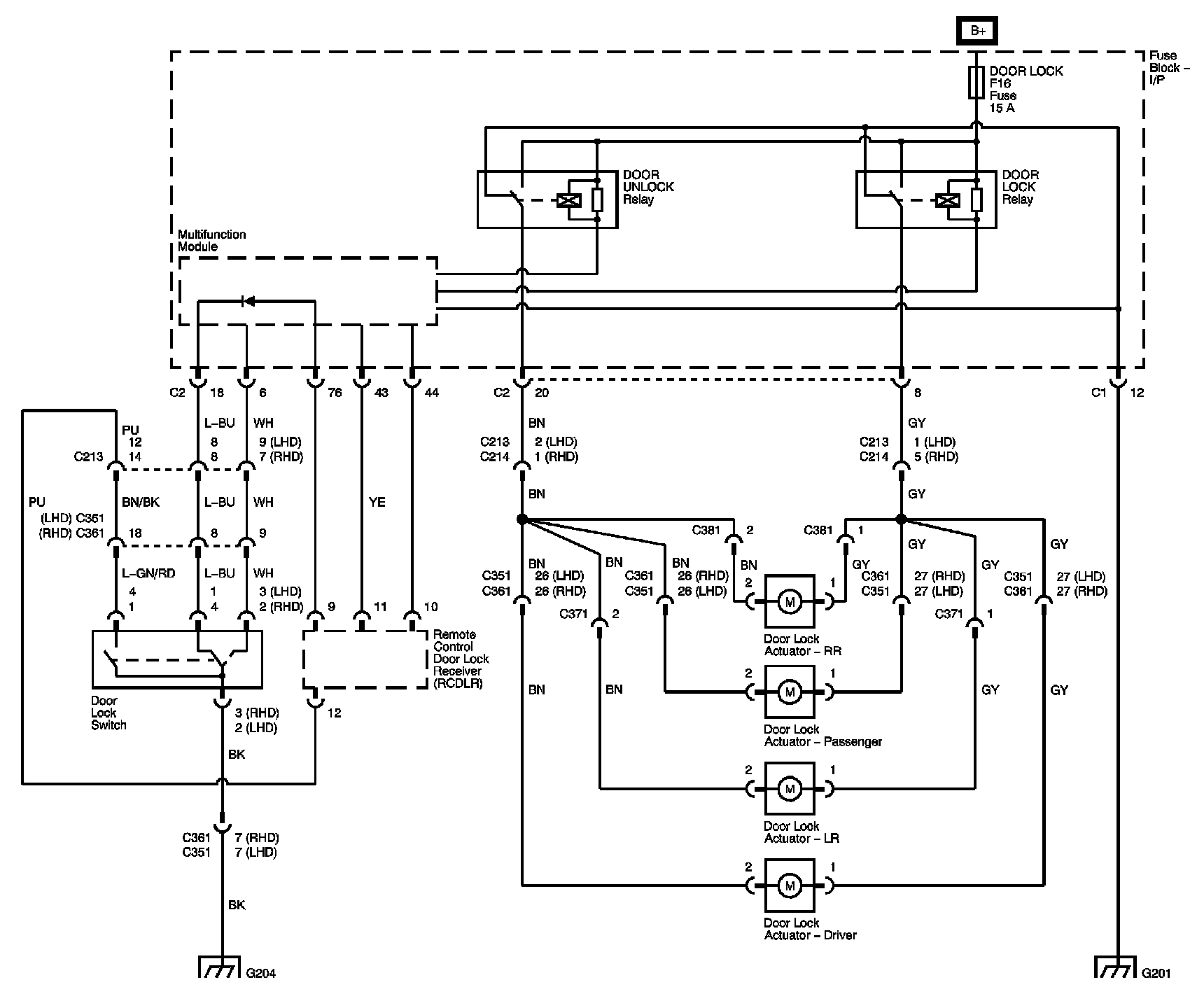 Door Lock/Indicator Diagram (Notchback)