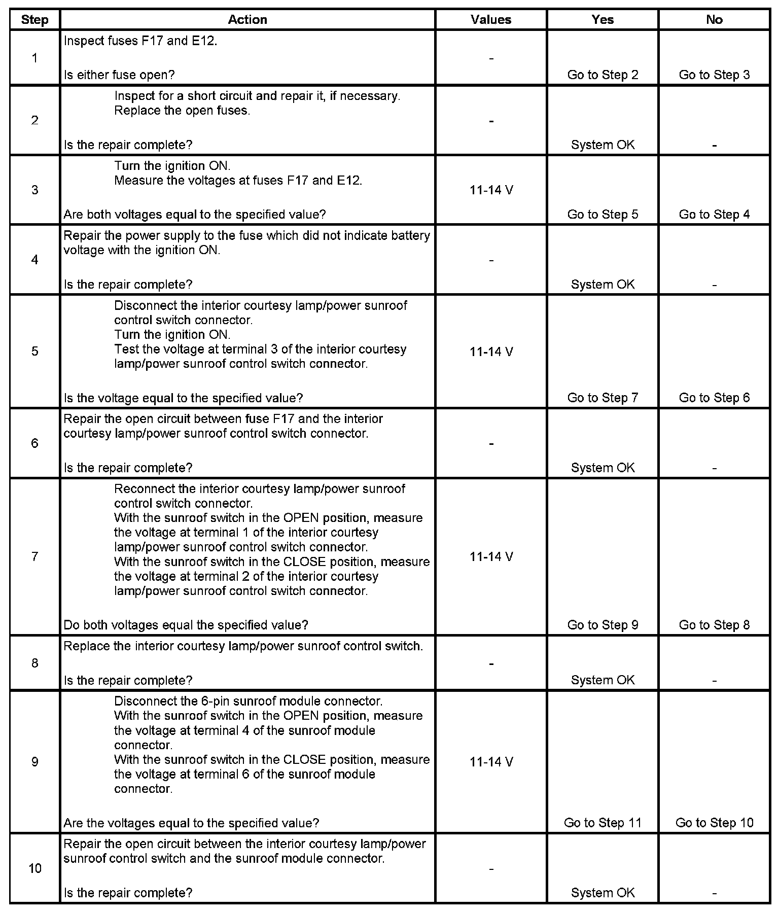 Power Sunroof Inoperative