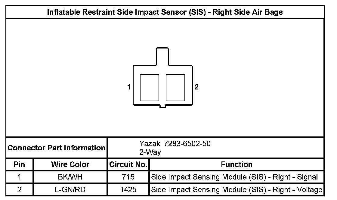 Inflatable Restraint Side Impact Sensor (SIS) - Right Side Air Bags