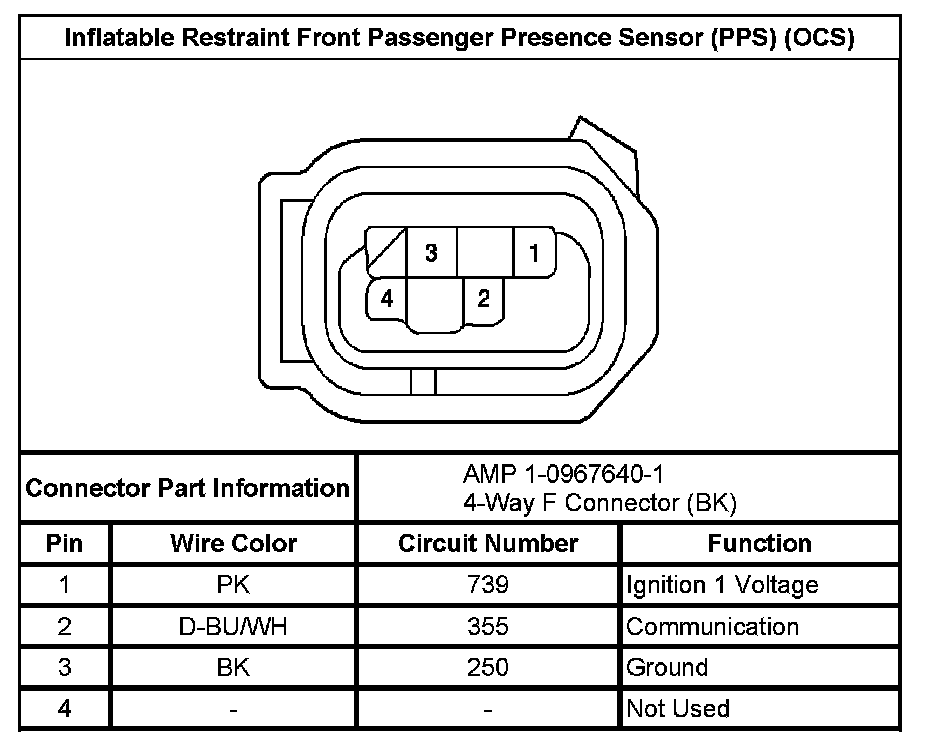Inflatable Restraint Front Passenger Presence Sensor (PPS) (OCS)