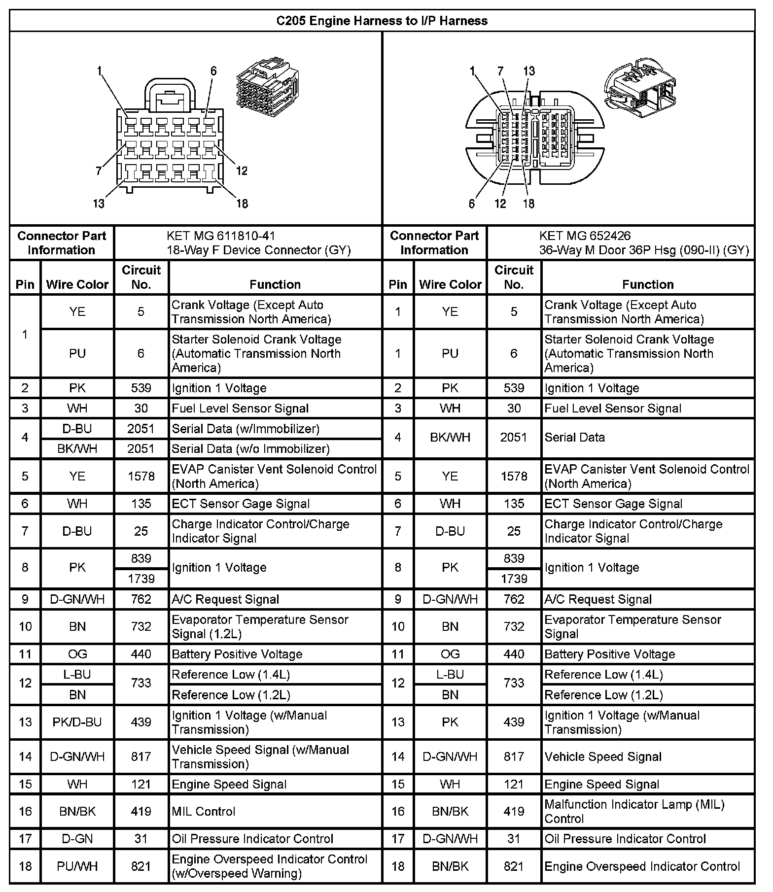 Inline Harness Connector End Views (Hatchback)