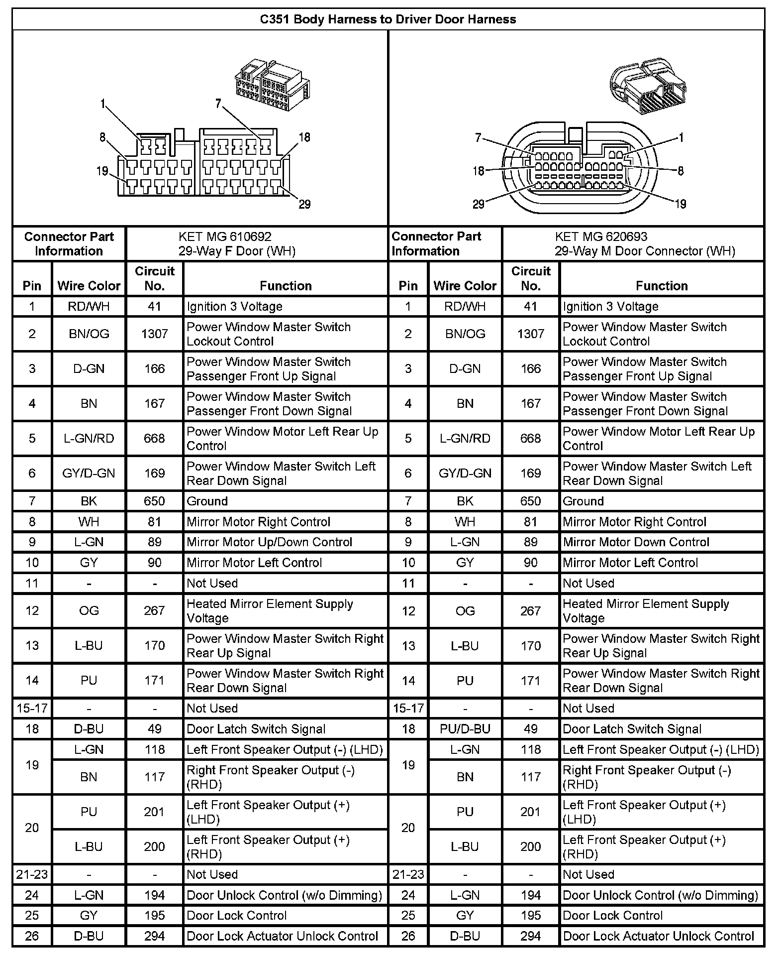 C351 Body Harness To Driver Door Harness (Pin 1 To 26):