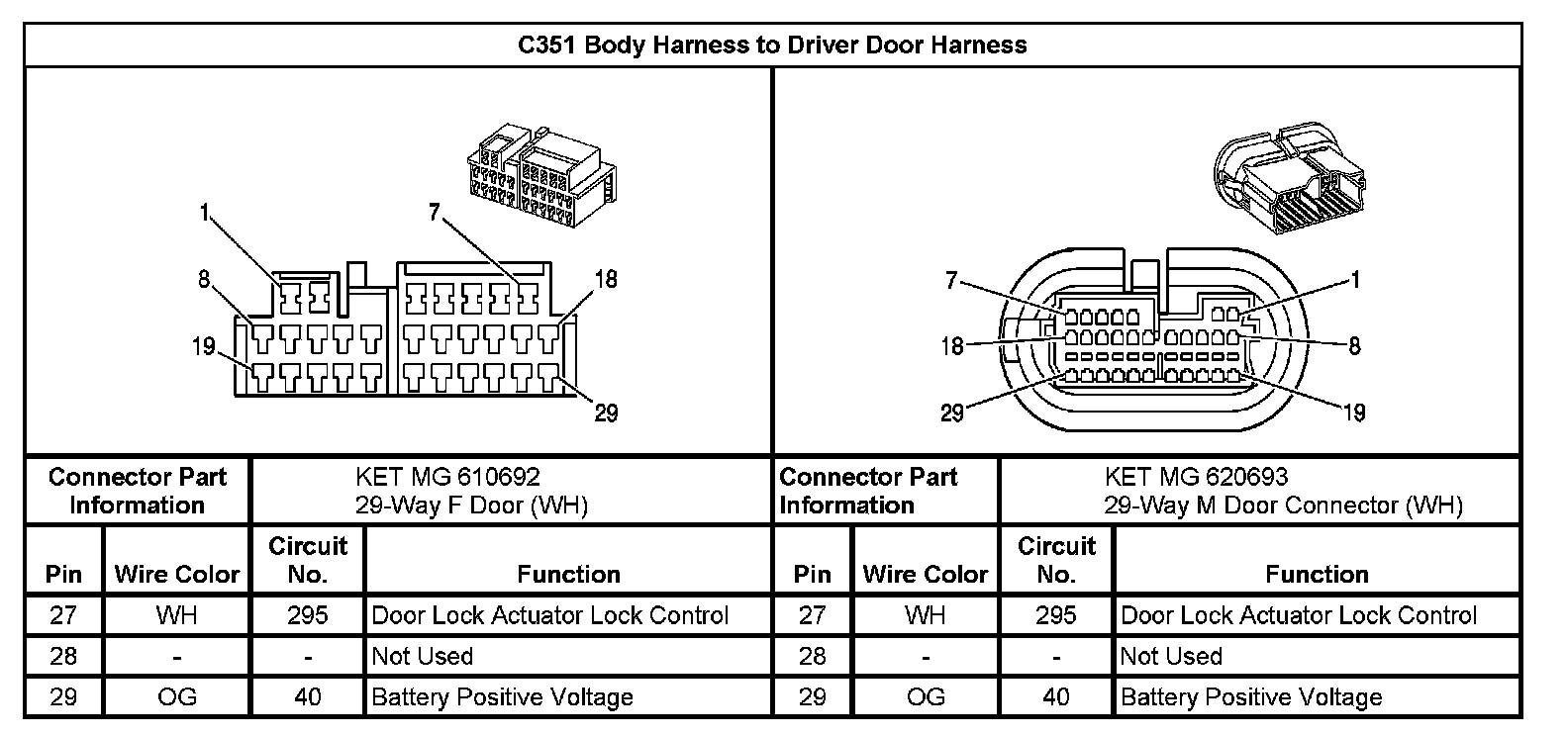 C351 Body Harness To Driver Door Harness (Pin 27 To 29):