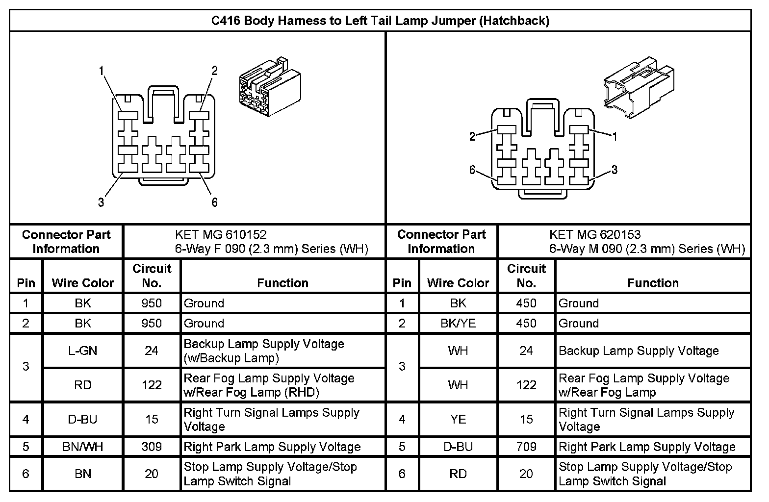 Inline Harness Connector End Views (Hatchback)
