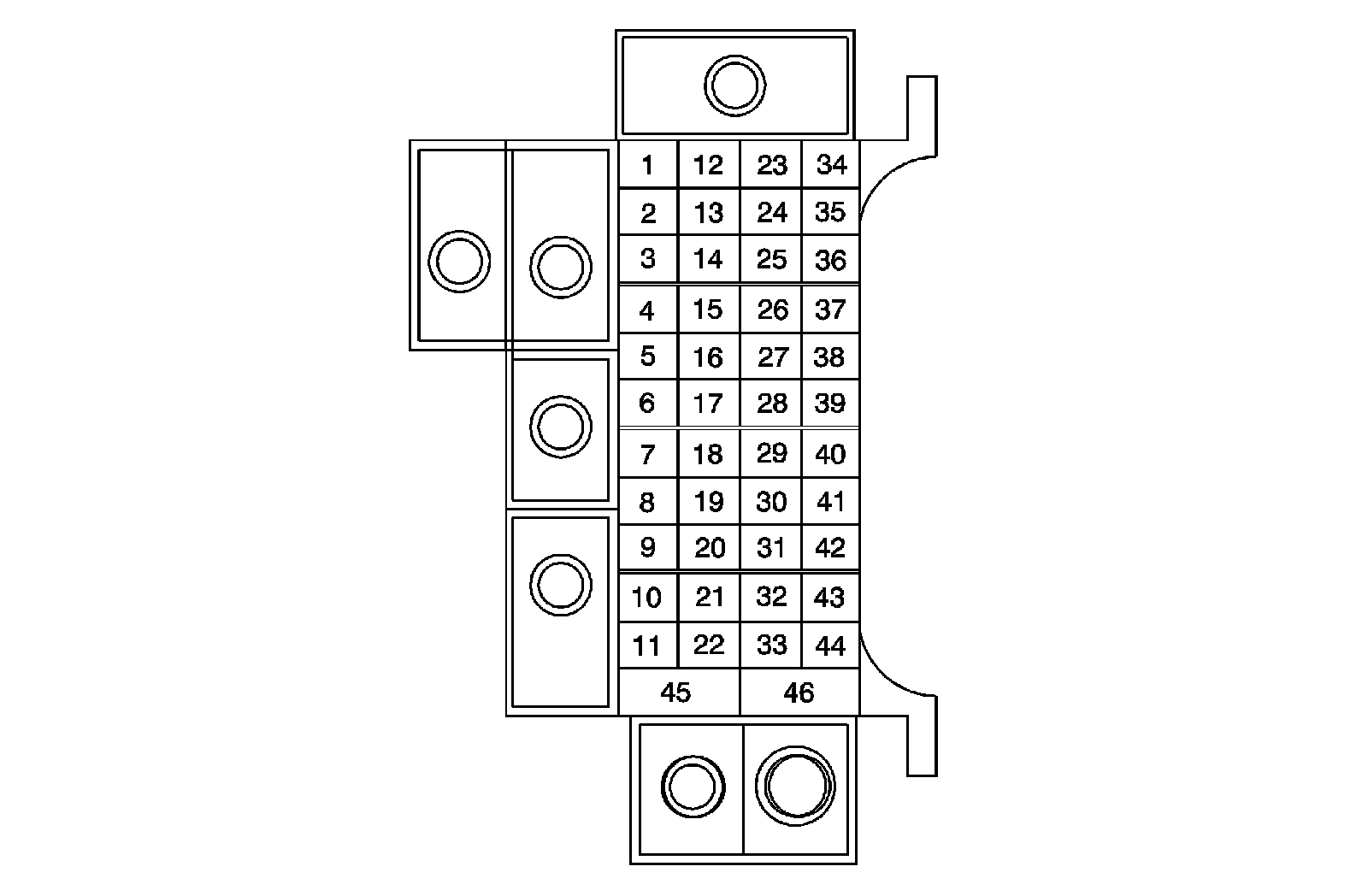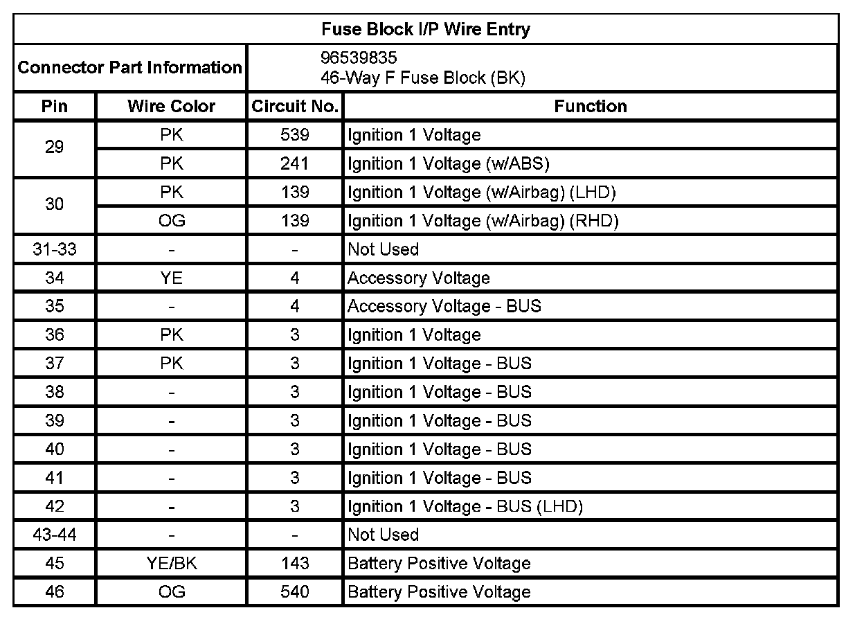Fuse Block I/P Wire Entry (Pin 29 To 46):