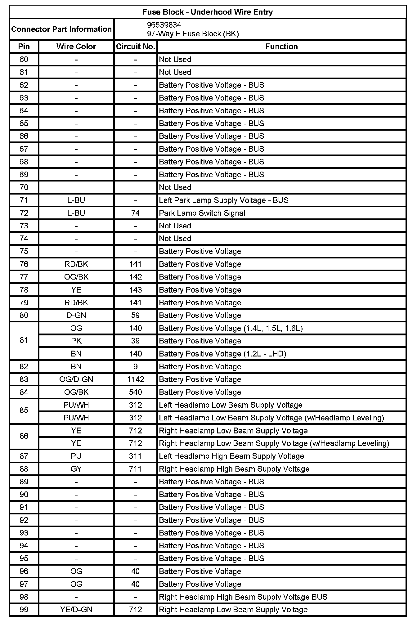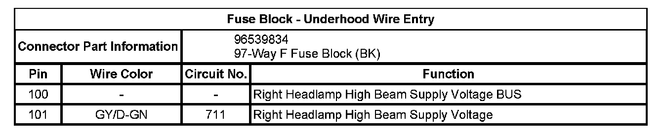 Fuse Block -Underhood Wire Entry (Pin 100 To 101):