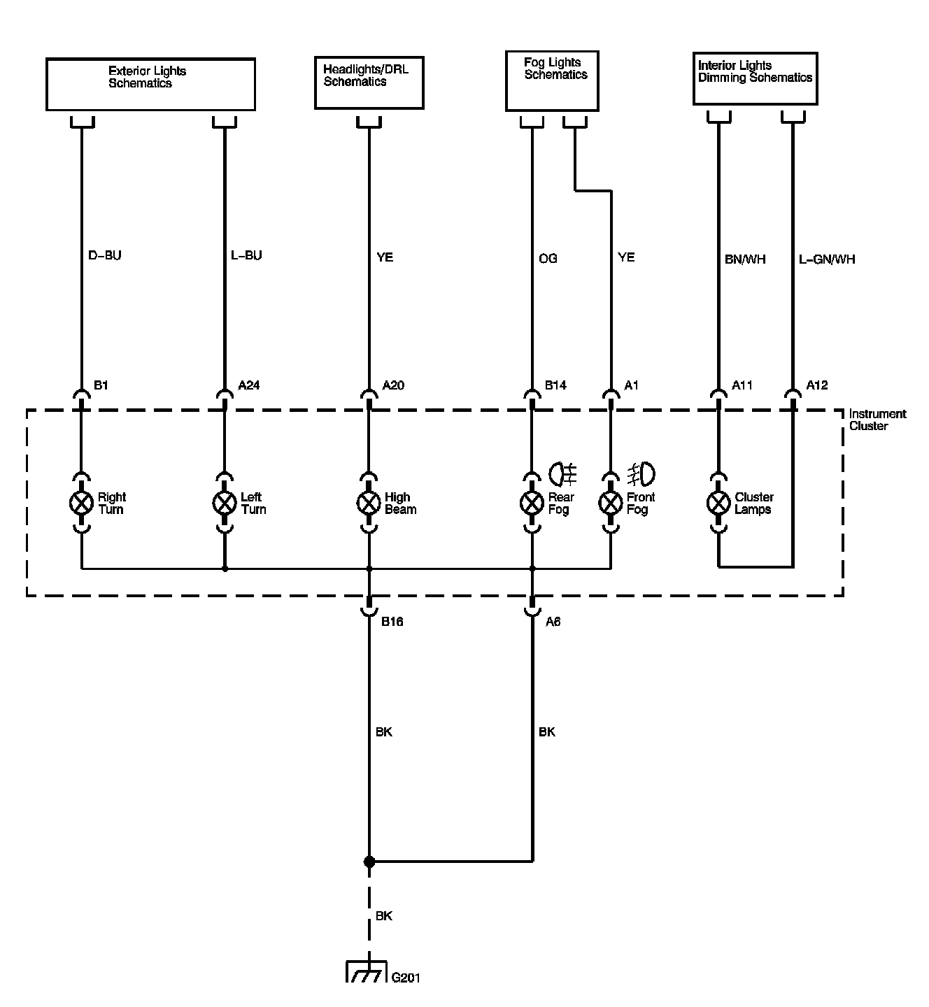 Turn, High Beam, Fog Indicators, Instrument Cluster Illumination