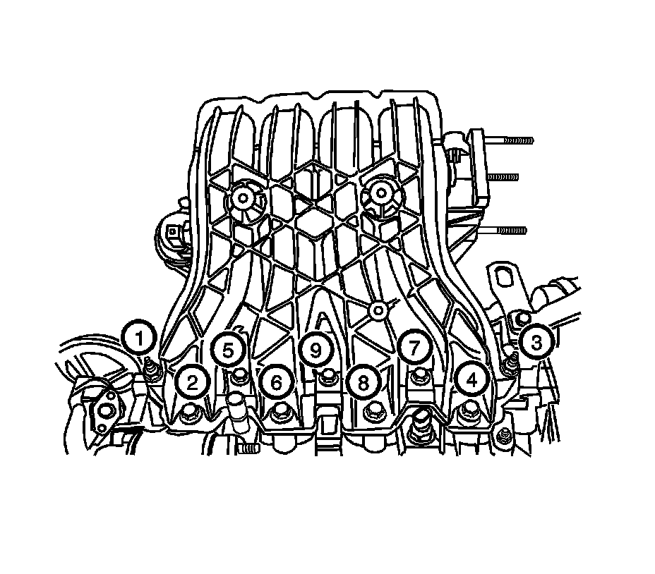 12. Remove the intake manifold retaining nuts and retaining bolts in the sequence shown.