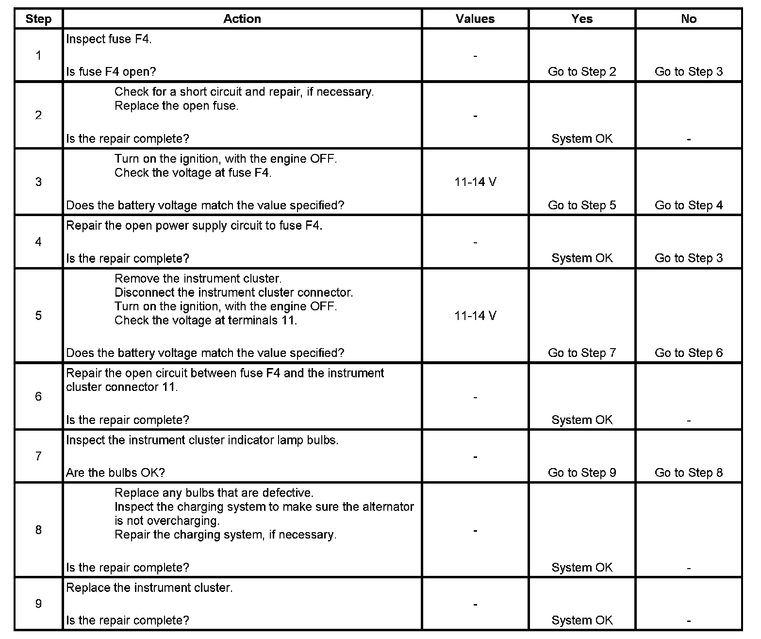 Instrument Cluster Indicator Lamps