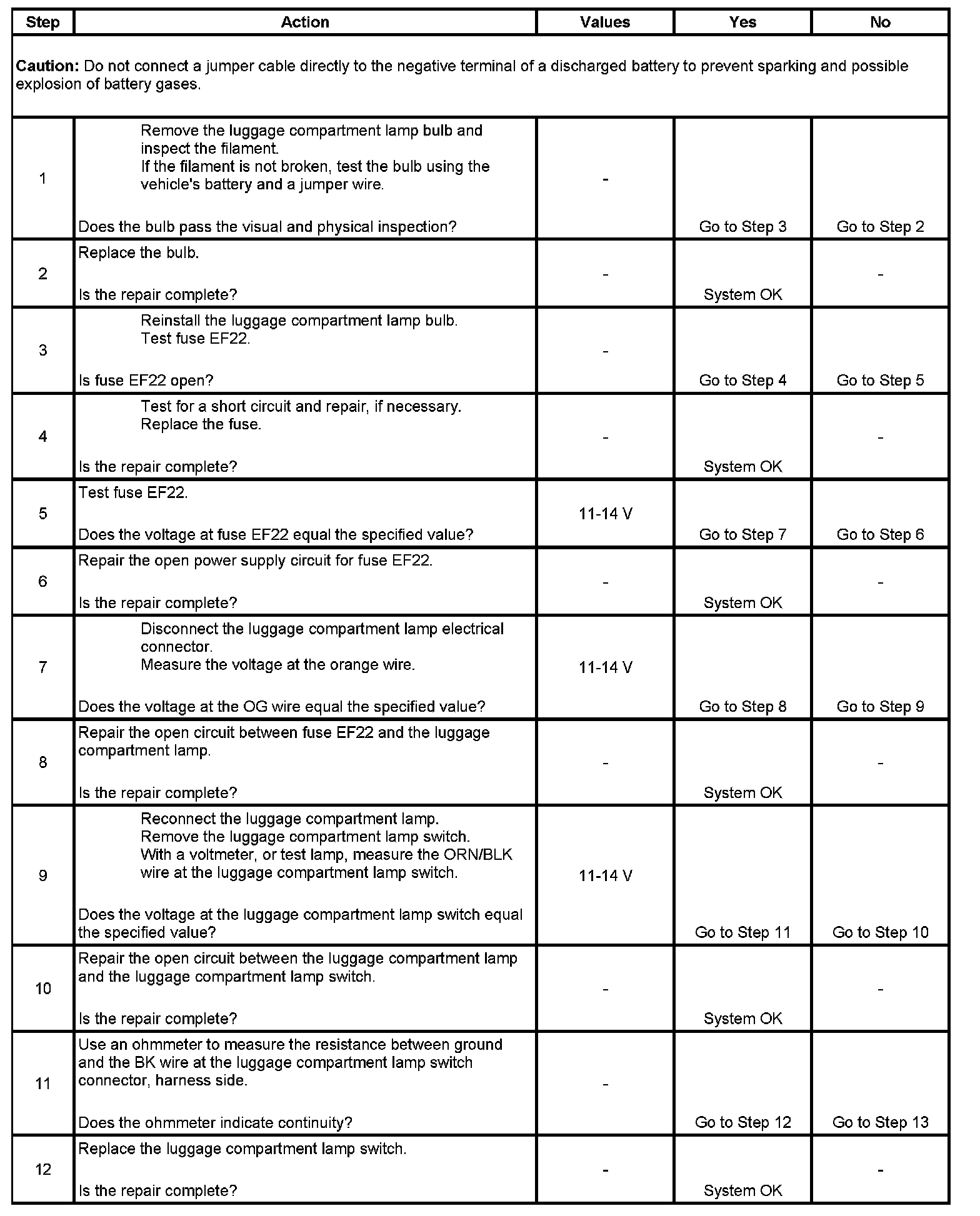 The number below refers to step on the diagnostic table.