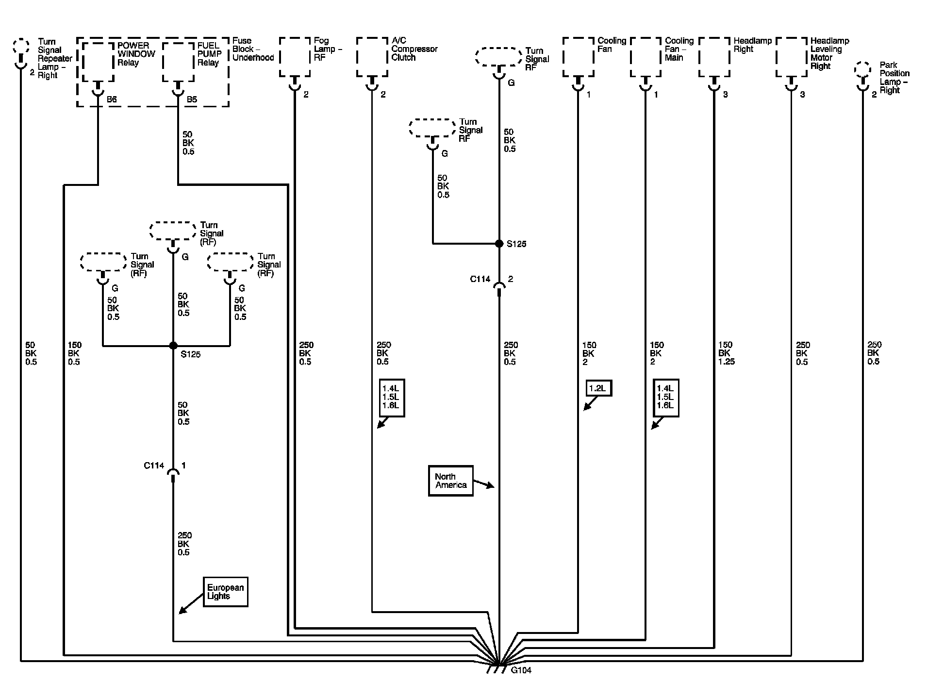 The locations for the Connectors, Grounds, Splices, and Grommets shown within these diagrams can be found via their numbers at Vehicle Locations.