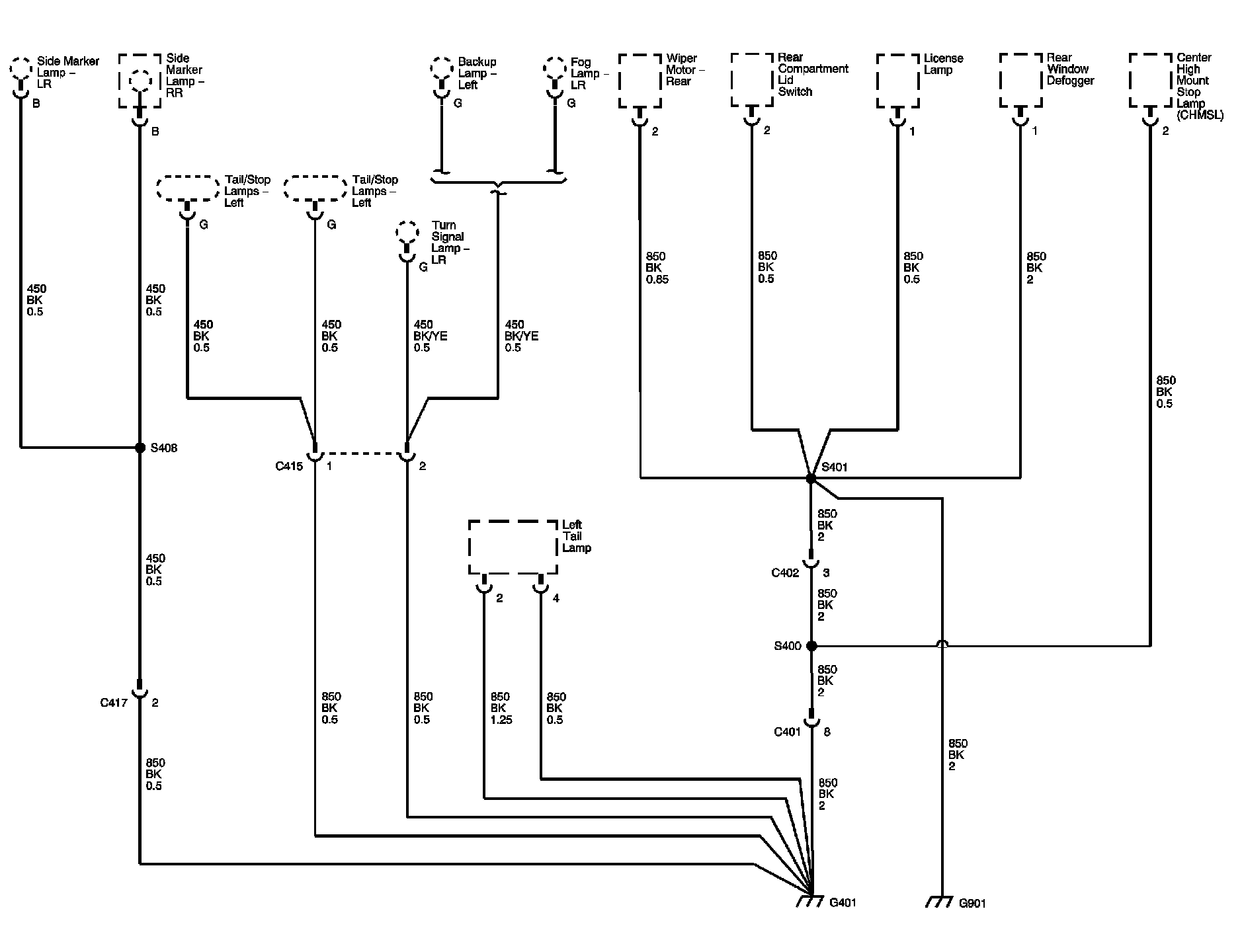 The locations for the Connectors, Grounds, Splices, and Grommets shown within these diagrams can be found via their numbers at Vehicle Locations.
