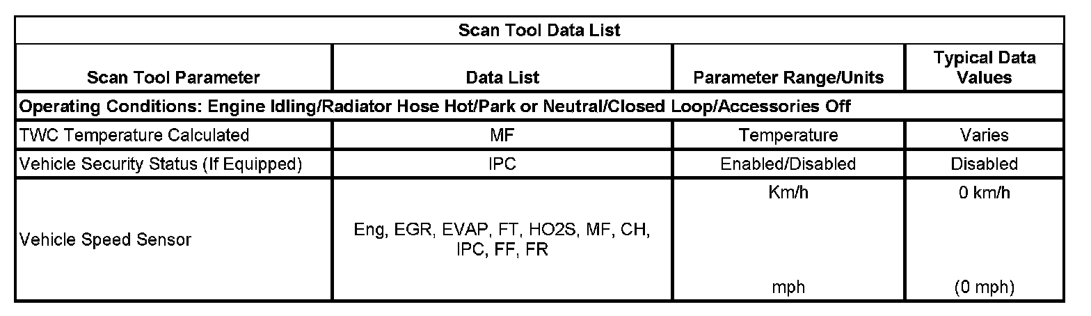 The Engine Scan Tool Data List contains all engine related parameters that are available on the scan tool. The list is arranged in alphabetical order. A parameter may appear in any one of the data lists, and in some cases may appear more than once, or in more than one data list in order to group certain related parameters together.