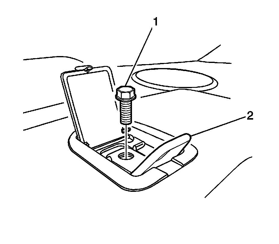 2. Remove the bolt (1) and the tether anchor (2).