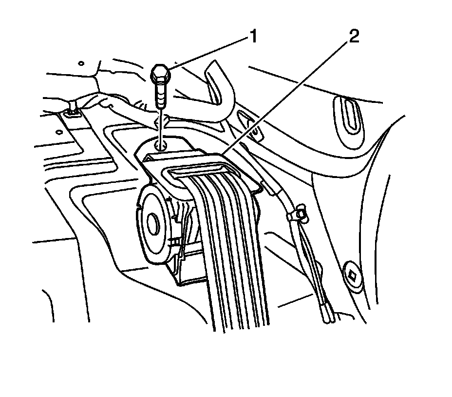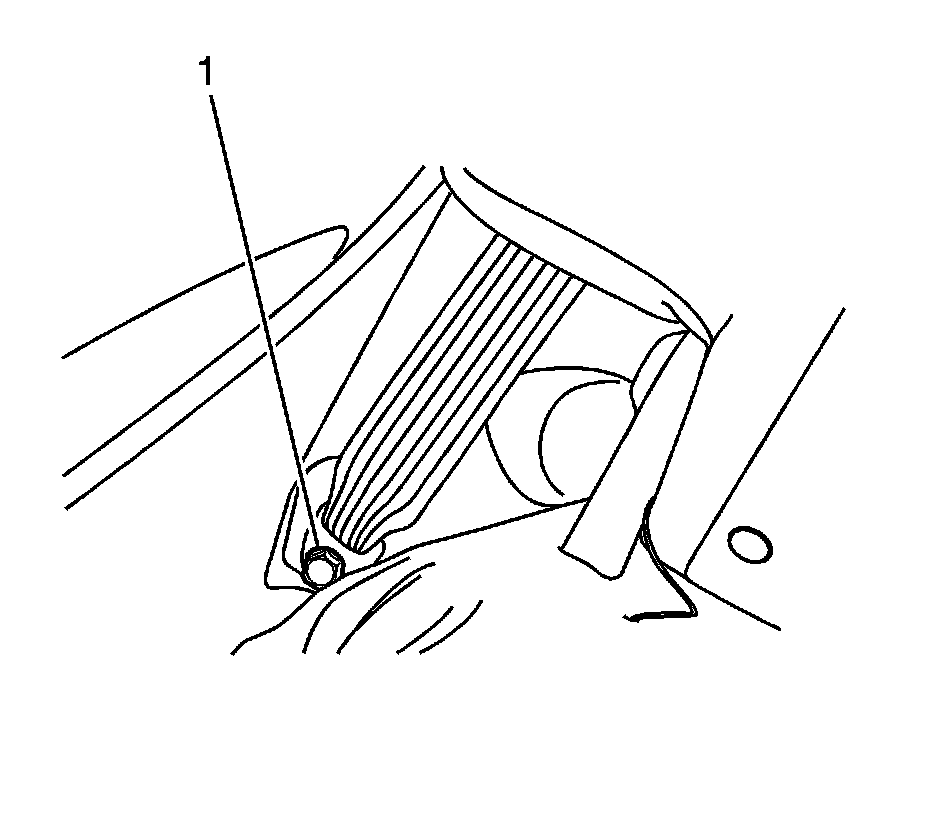 3. Install the seat belt anchor to the upper wheelhouse trim panel with the bolt (1).