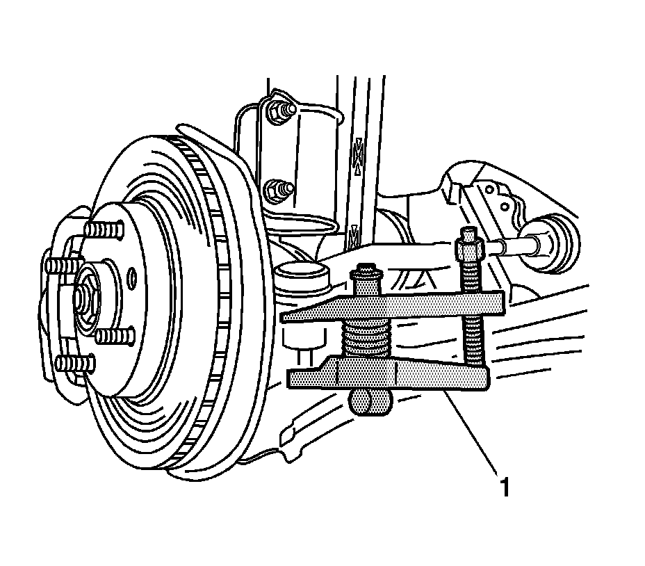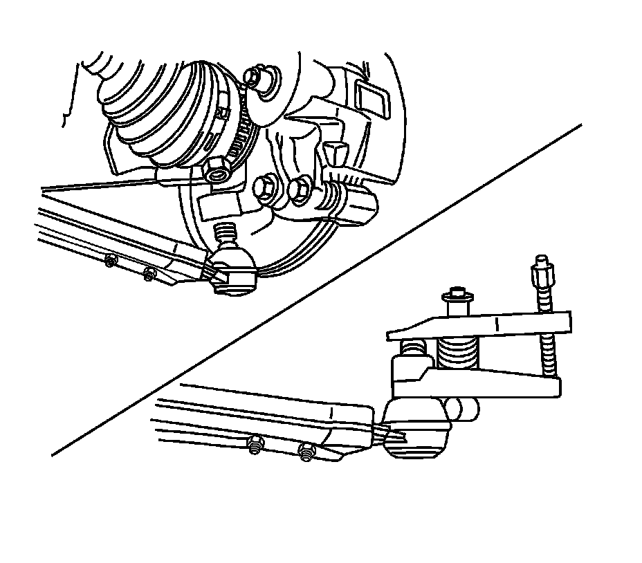 Notice: Use only the recommended tools for separating the ball joint from the knuckle. Failure to use the recommended tools may cause damage to the ball joint and seal.