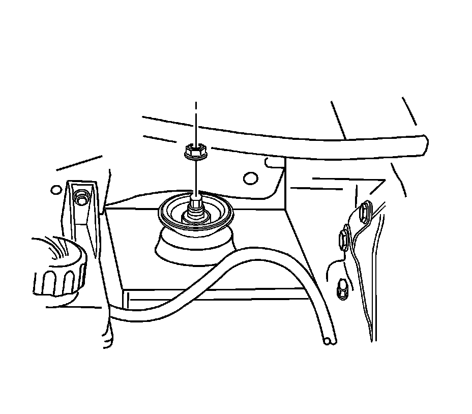 1. Loosen the strut assembly-to-body nut that retains the top of the strut assembly to the vehicle.