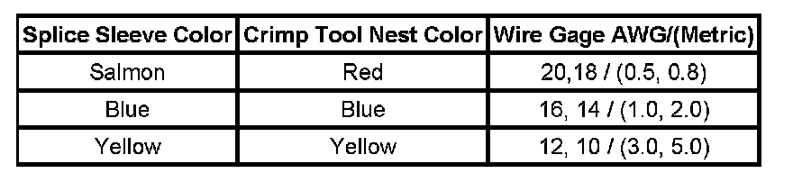 5. Select the proper splice sleeve (2) and the required crimp nest tool, refer to the Crimp and Seal Splice Table.