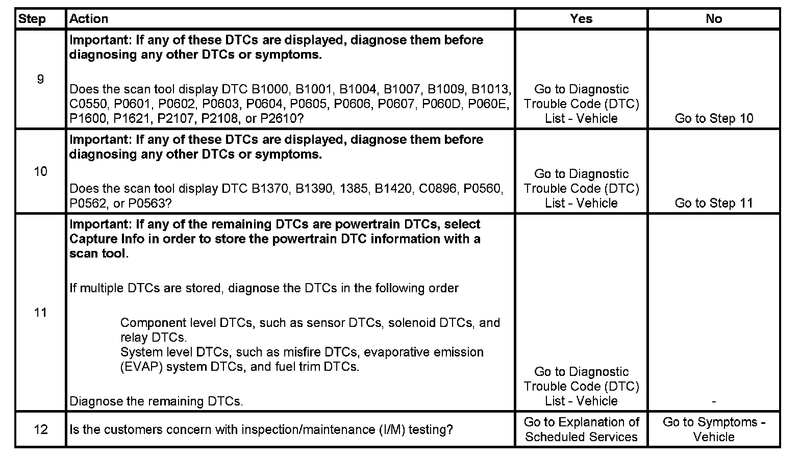 10. This step ensures that all device voltage DTCs are diagnosed before other system level DTCs.