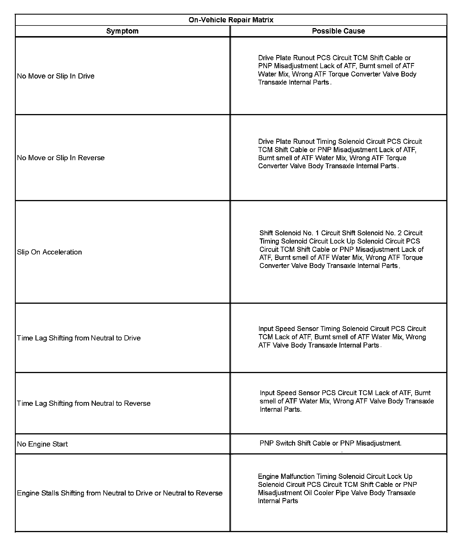 Symptoms - Automatic TransmissionSymptoms - Automatic Transmission (Part 1):