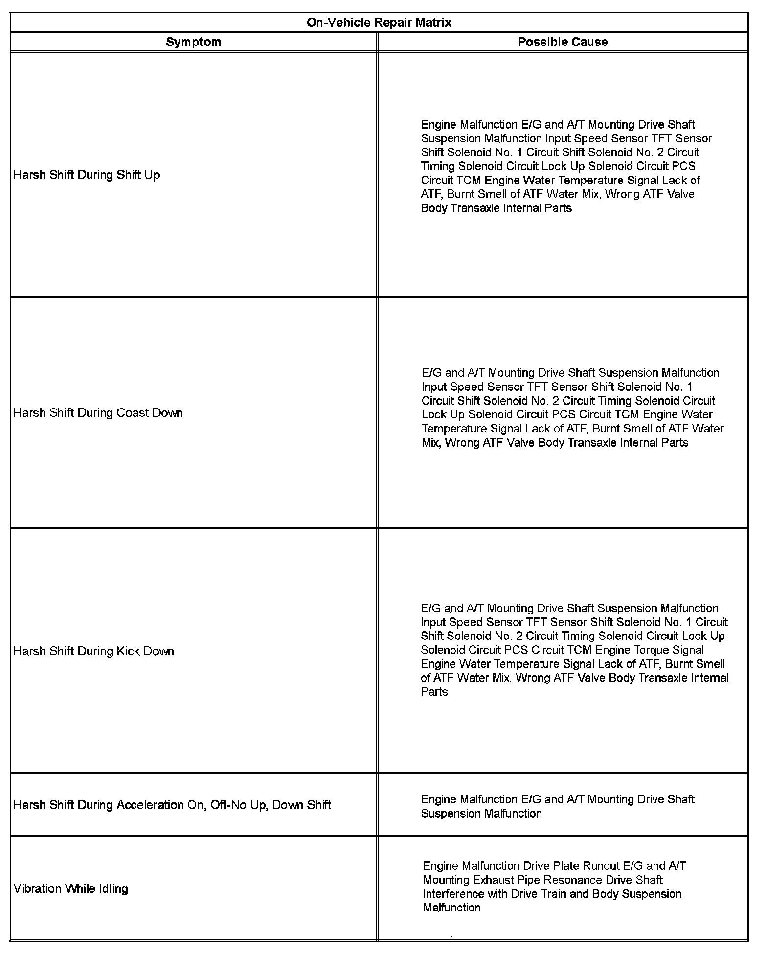 Symptoms - Automatic Transmission (Part 5):