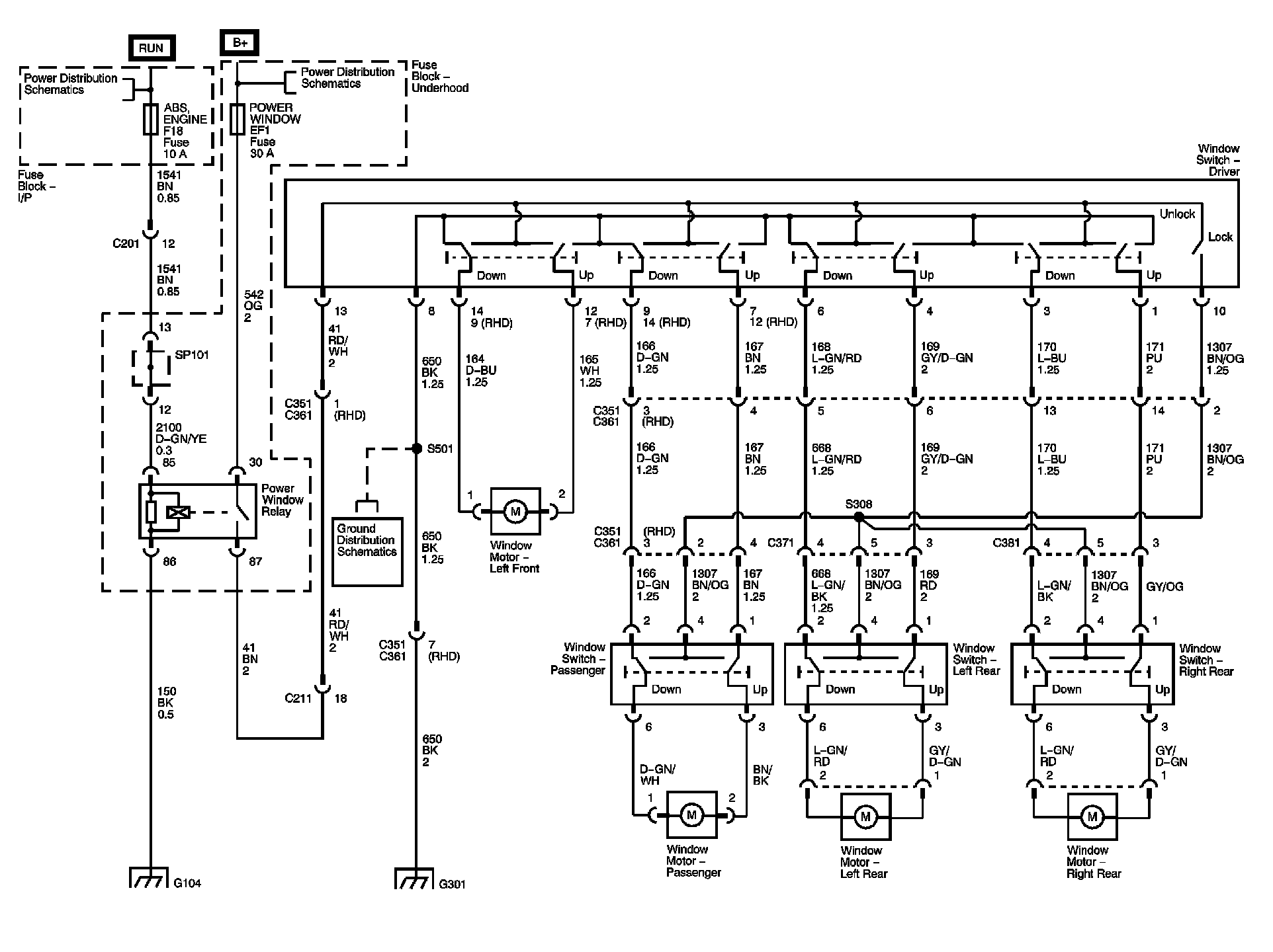 Locations: The locations for the Connectors, Grounds, Splices, and Grommets shown within these diagrams can be found via their numbers at Vehicle Locations. Locations