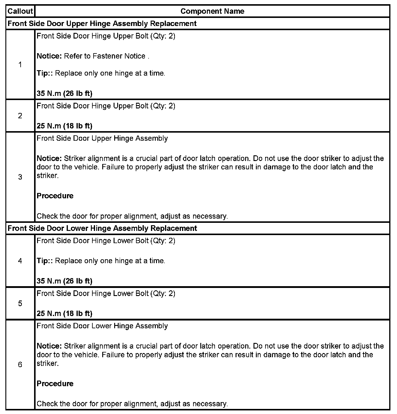 Front Side Door Hinge Replacement