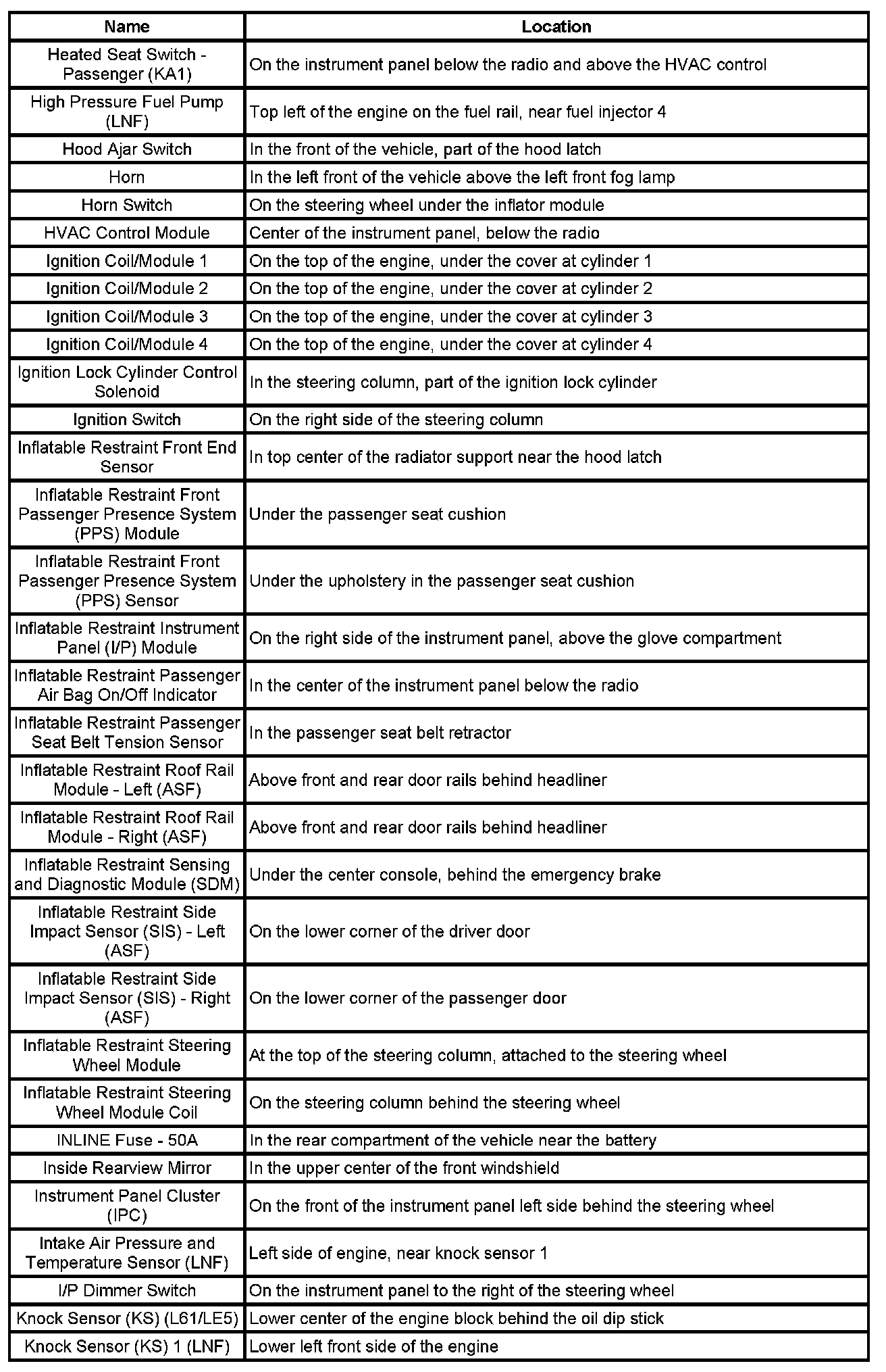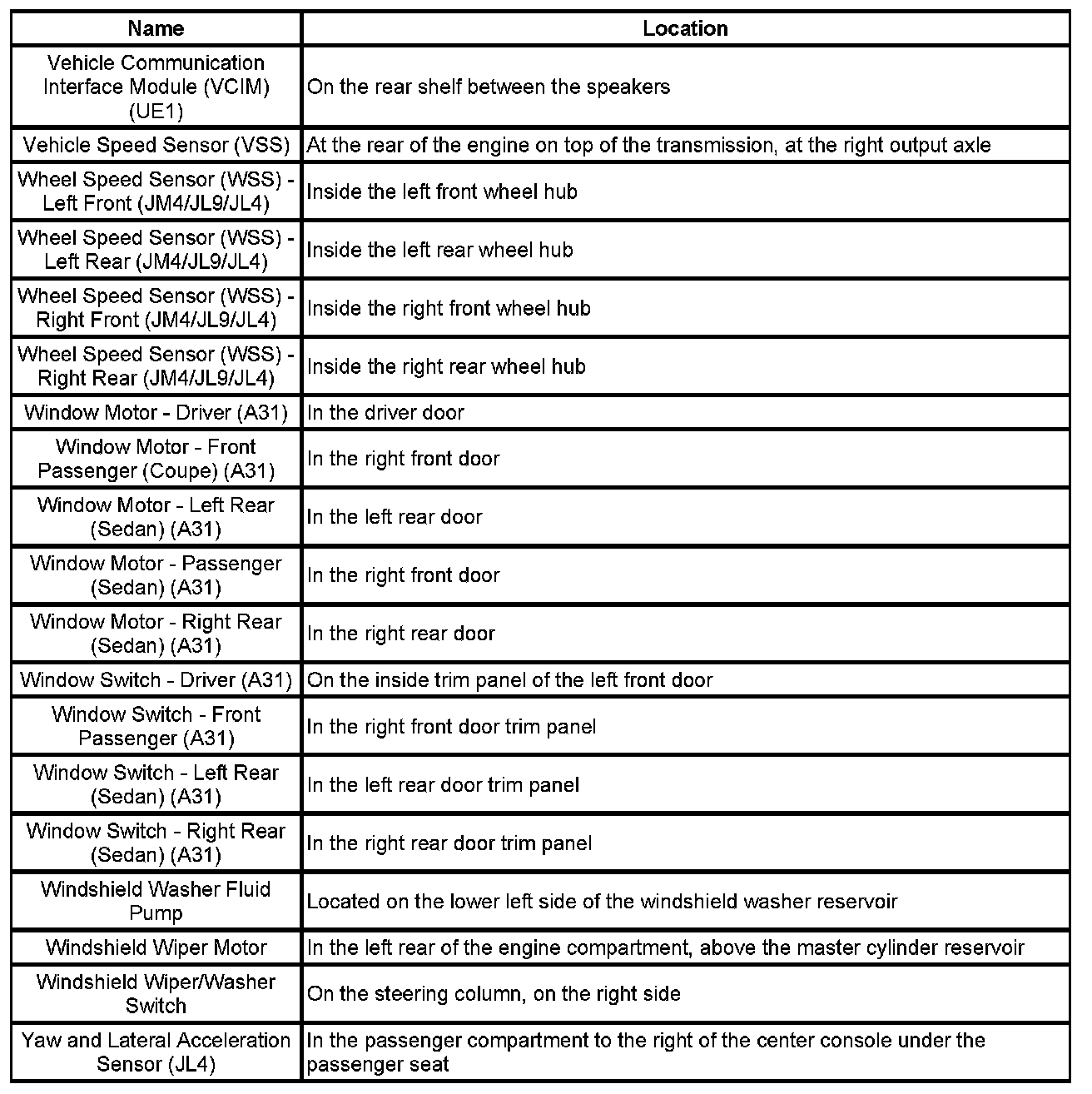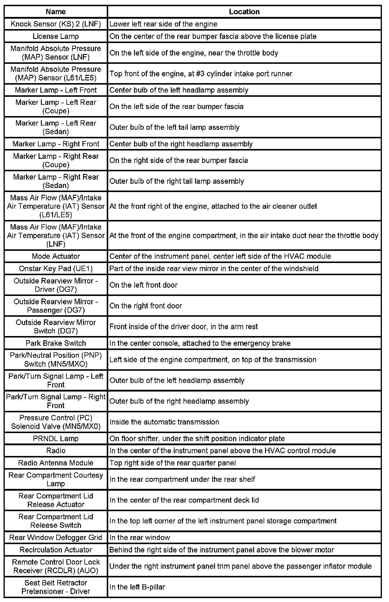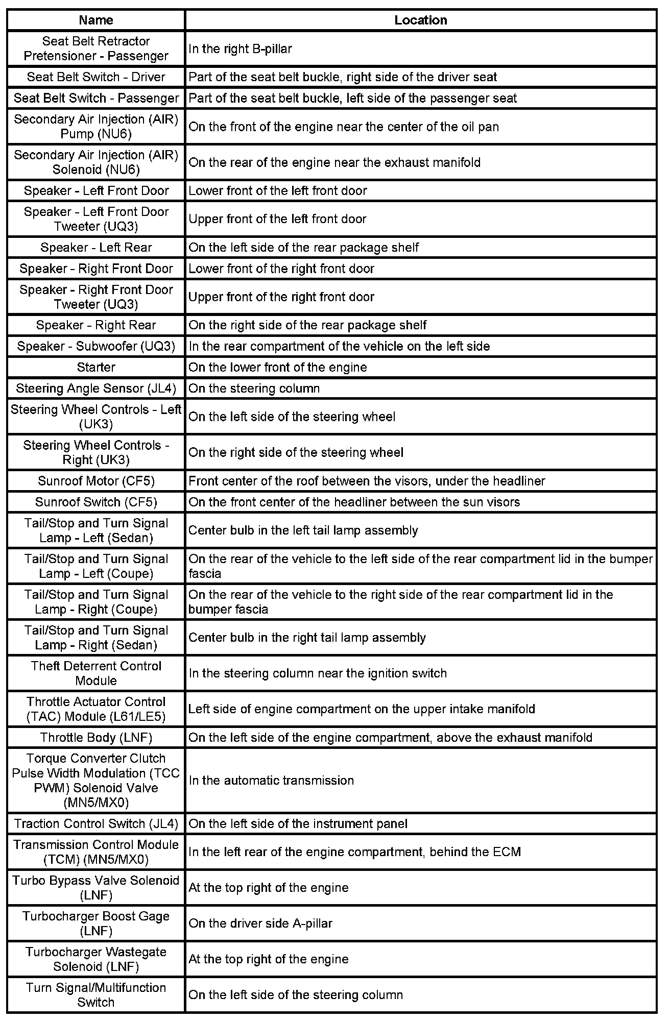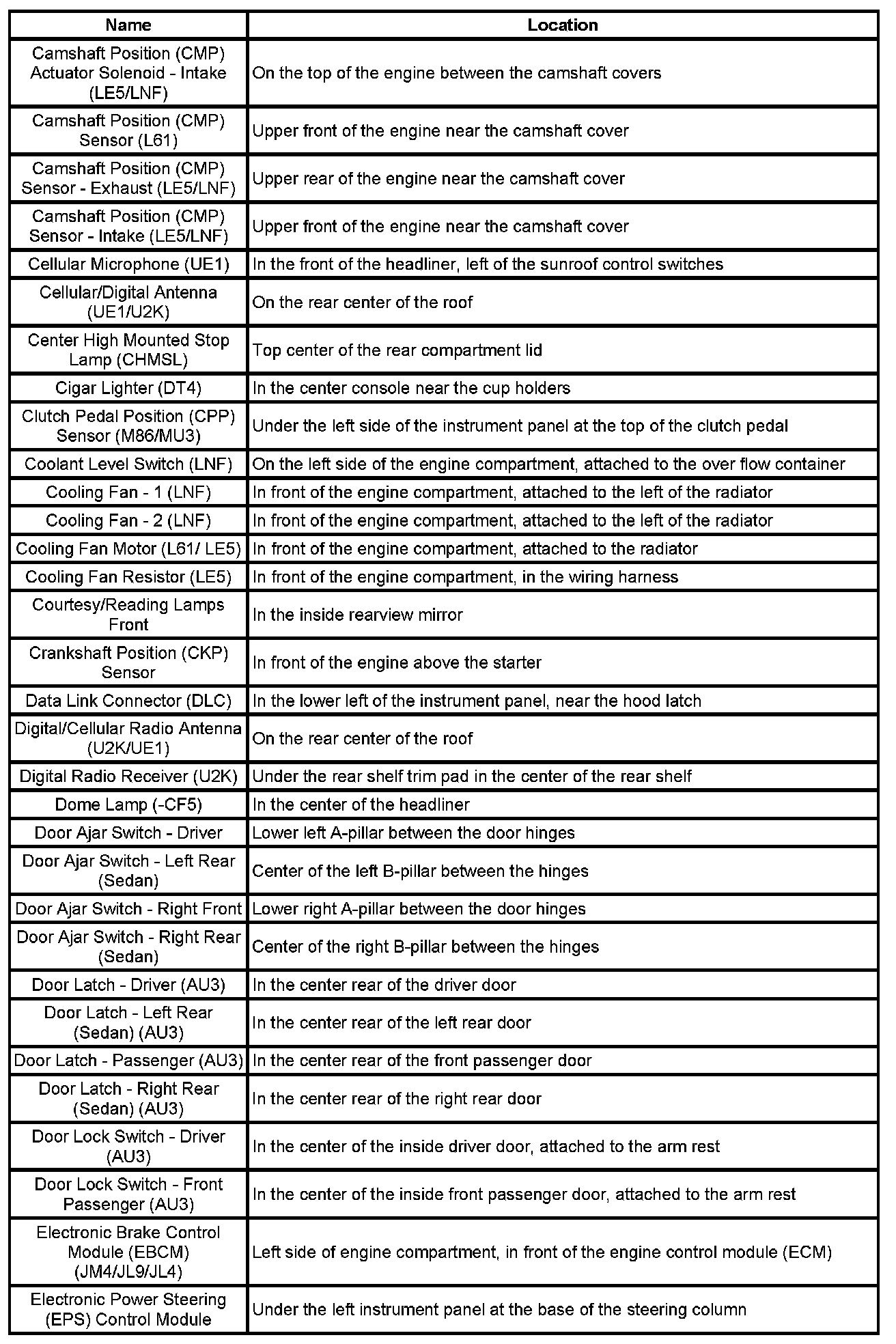 Master Electrical Component List