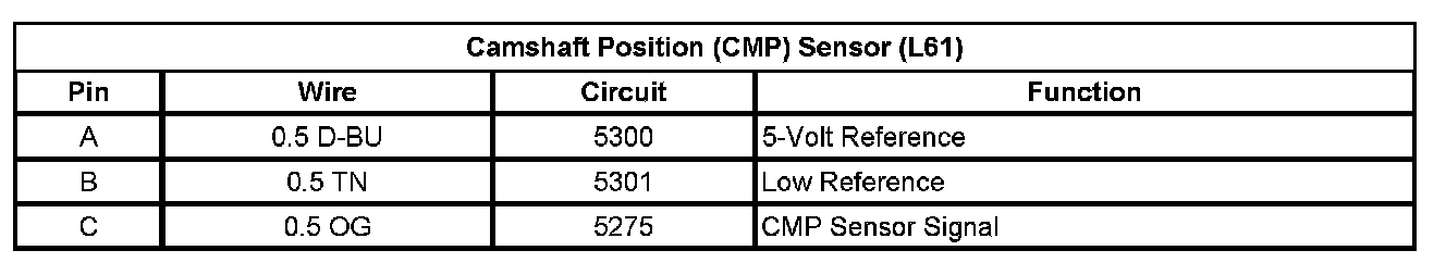 Camshaft Position (CMP) Sensor (L61)