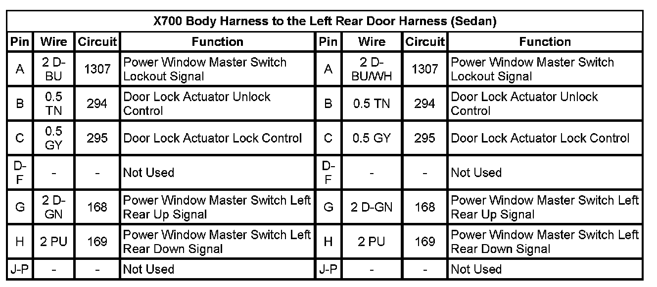 X700 Body Harness to the Left Rear Door Harness (Sedan)