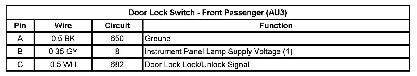Door Lock Switch - Front Passenger (AU3)