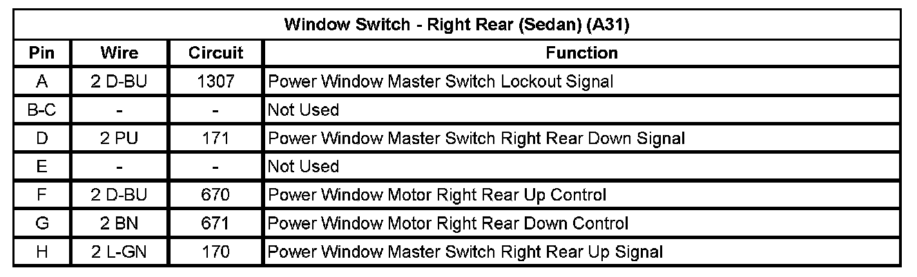 Window Switch - Right Rear (Sedan) (A31)