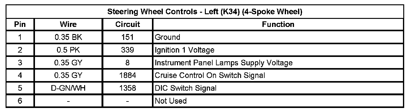 Steering Wheel Controls - Left (K34) (4-Spoke Wheel)