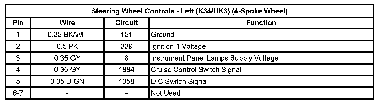 Steering Wheel Controls Left (K34/UK3)