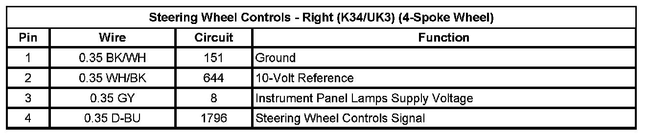 Steering Wheel Controls - Right (K34/UK3) (4-Spoke Wheel)